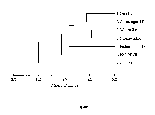 Phenogram based on UPGMA cluster analysis using Rogers' (1972) genetic distance among seven samples of